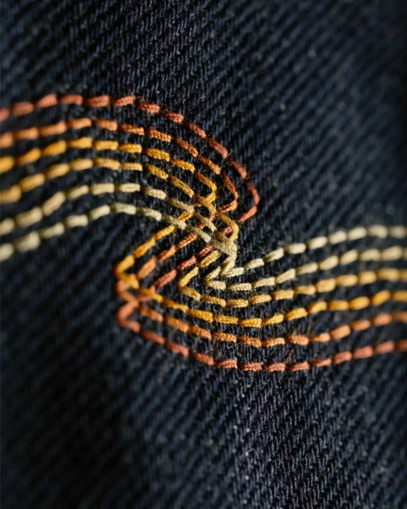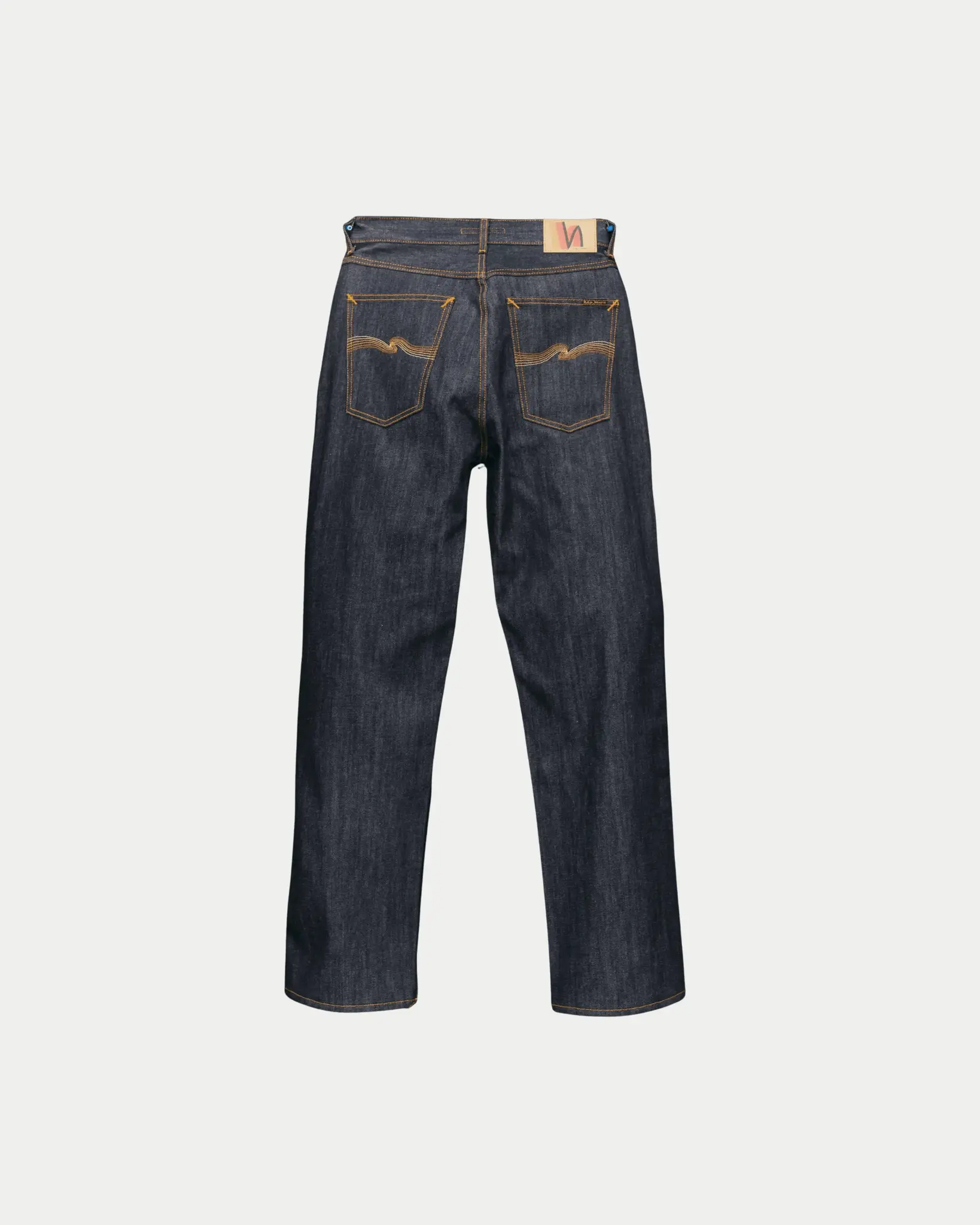 The Tuff Tony is a loose-fitting, high-waisted jean made from 100% organic cotton. The Dry Sunburns has a deep, unwashed colour and a sun motif on the back pockets.