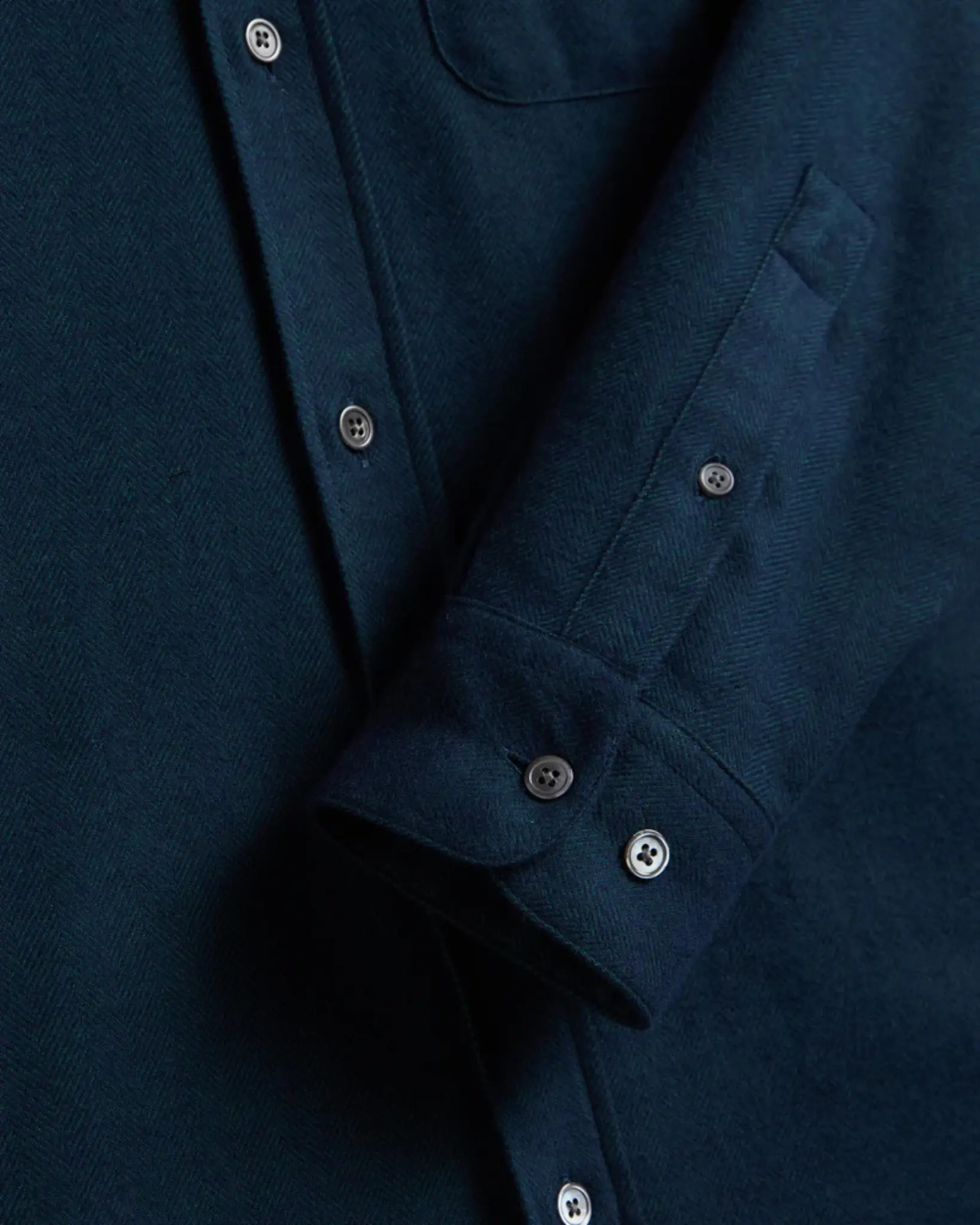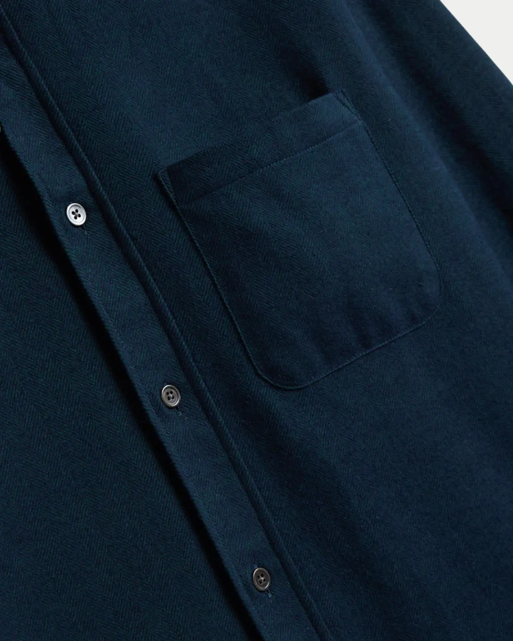 These lovely flannel shirts have been made in Portugal for four generations. The Espiga has a herringbone duo-tone weave, which creates a beautiful contrast. Wear it open as a soft layer or closed for a smarter look.