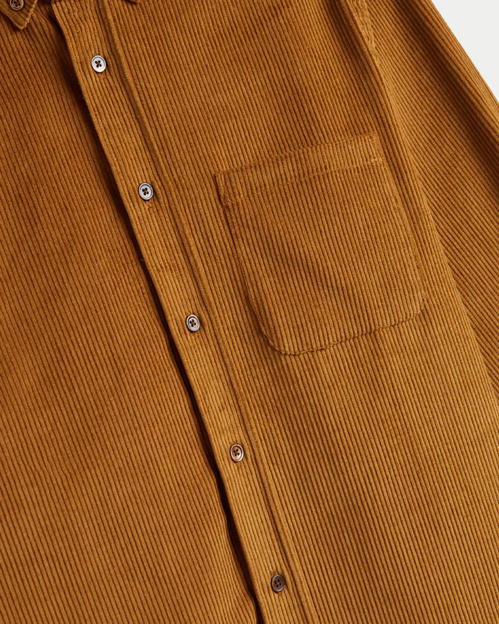 These ribbed flannel shirts have been made in Portugal for four generations. Wear this mocca shirt open as an extra layer or closed for a smarter look.