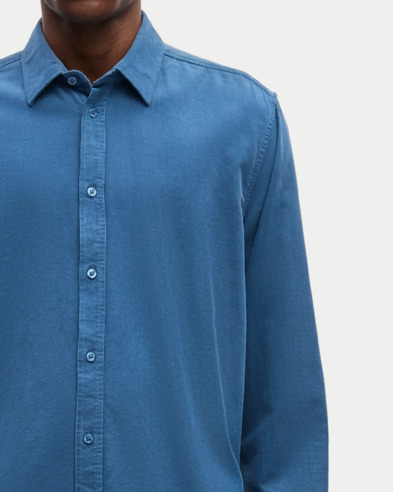 Het regular fit overhemd van Samsøe Samsøe: Liam. Deze Stellar Blue heeft een hemelsblauwe kleur en een kleine rib wat extra diepte geeft in het shirt.