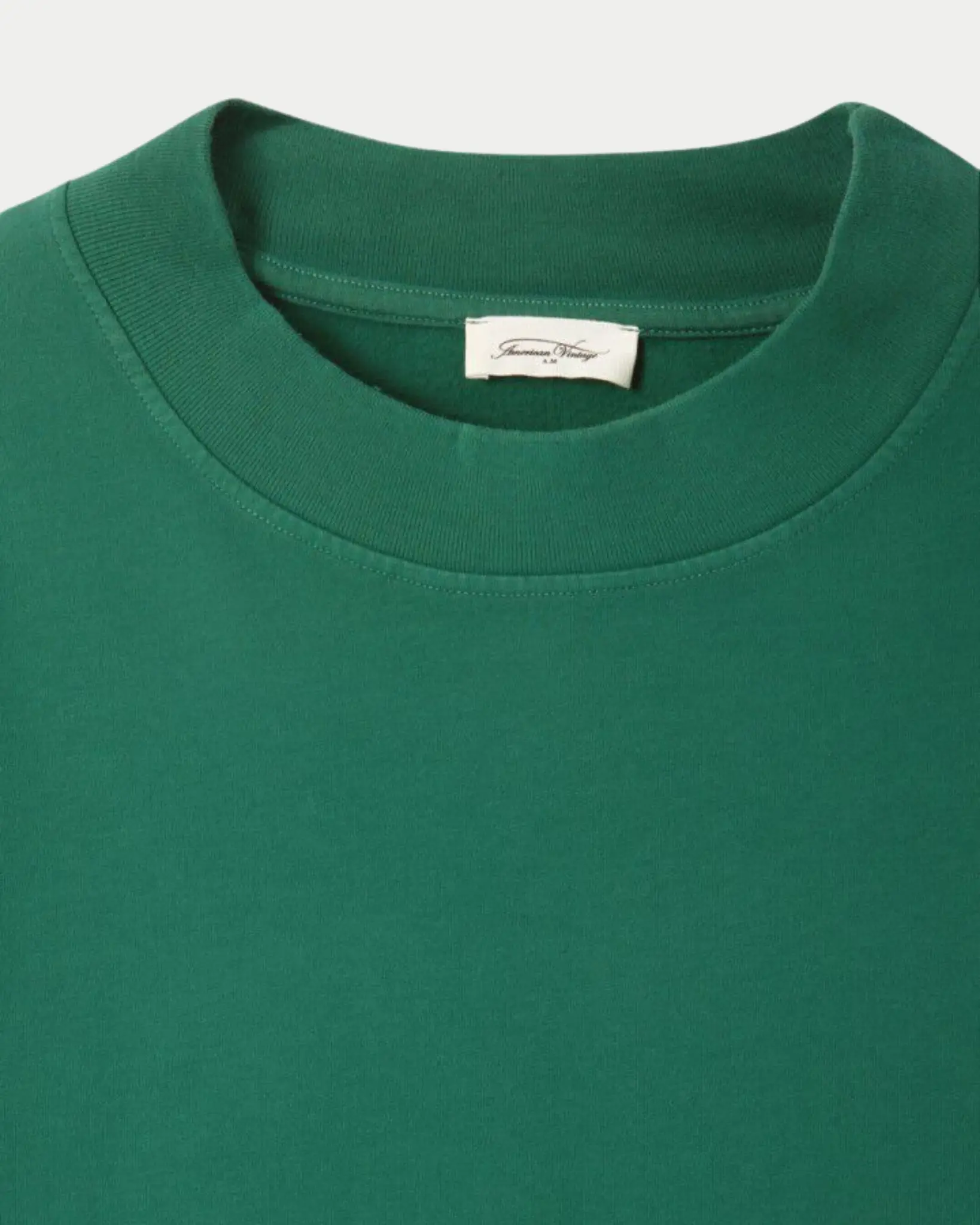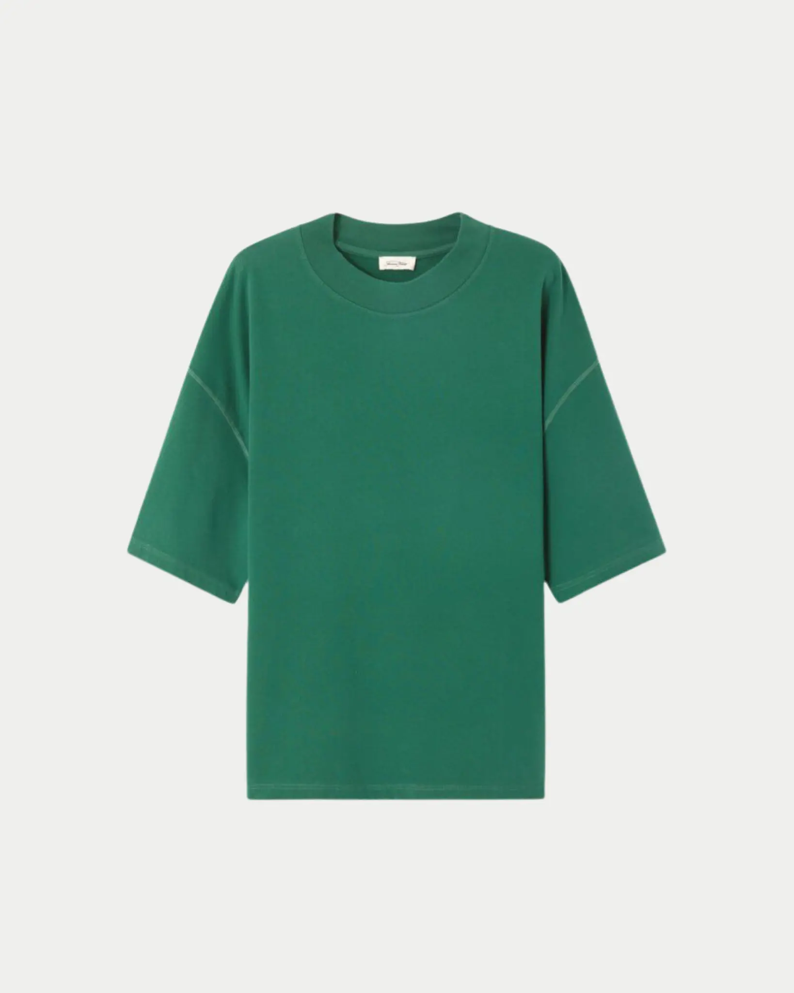 Dropped shoulder is een understatement, maar door deze fit, brede kraag en zachte french terry katoen is het een heerlijk gewassen groen t-shirt voor elk moment.