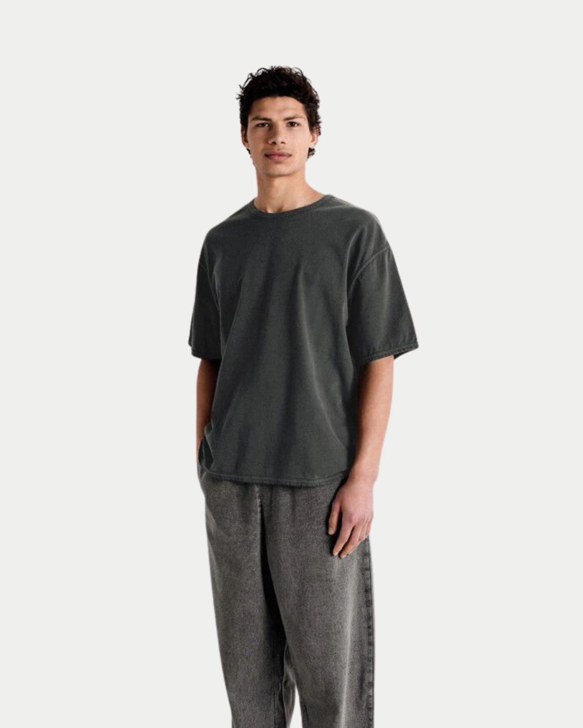Dropped shoulder is een understatement, maar door deze fit, brede kraag en stevige katoenen stof is het een heerlijk gewassen zwart t-shirt voor elk moment dat de zon schijnt.