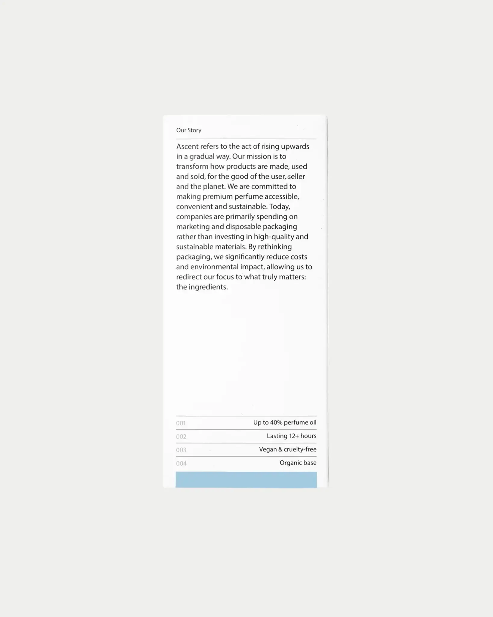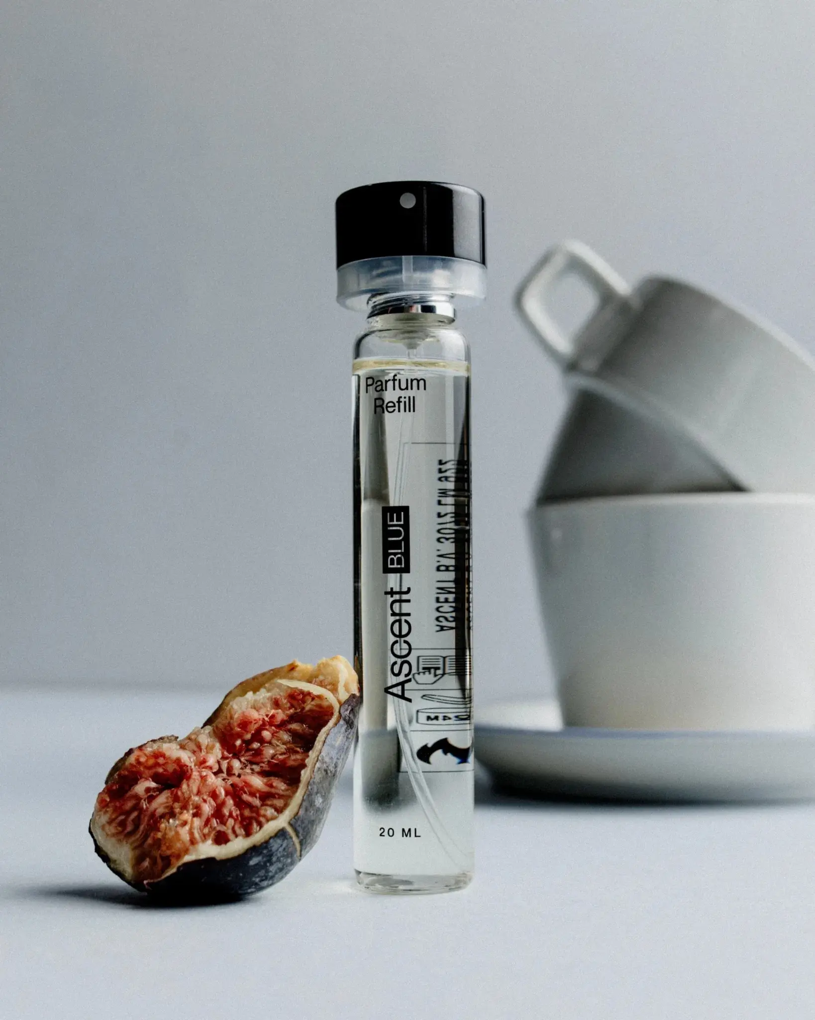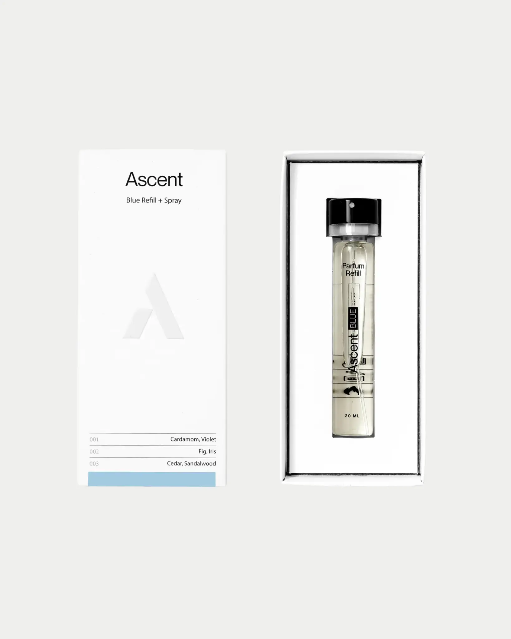 De navulling van Ascent Blue is los of in de handige case te gebruiken. Deze uniseks parfum heeft een uitgesproken geur die sensuele noten combineert met houtachtige en poederige akkoorden.
