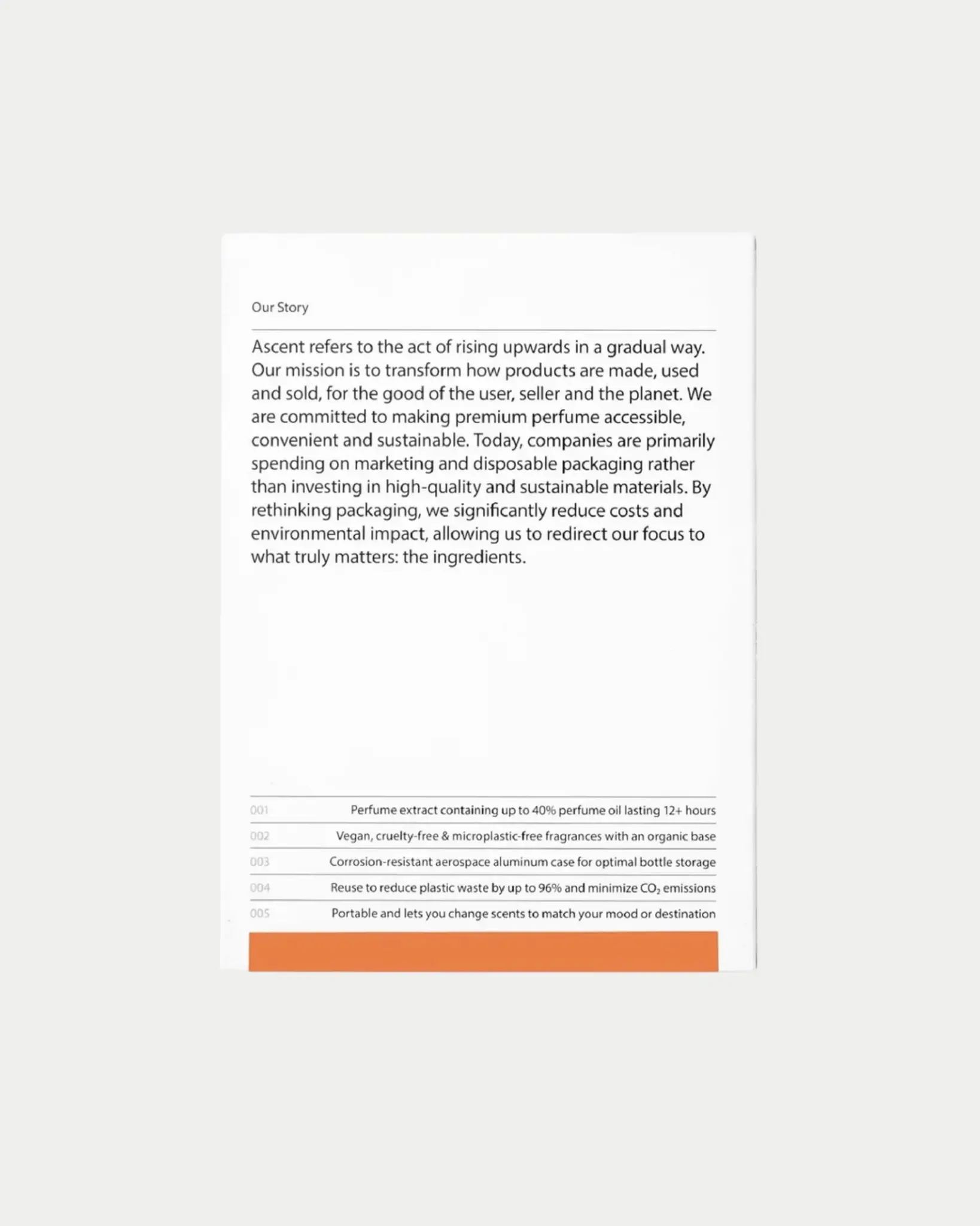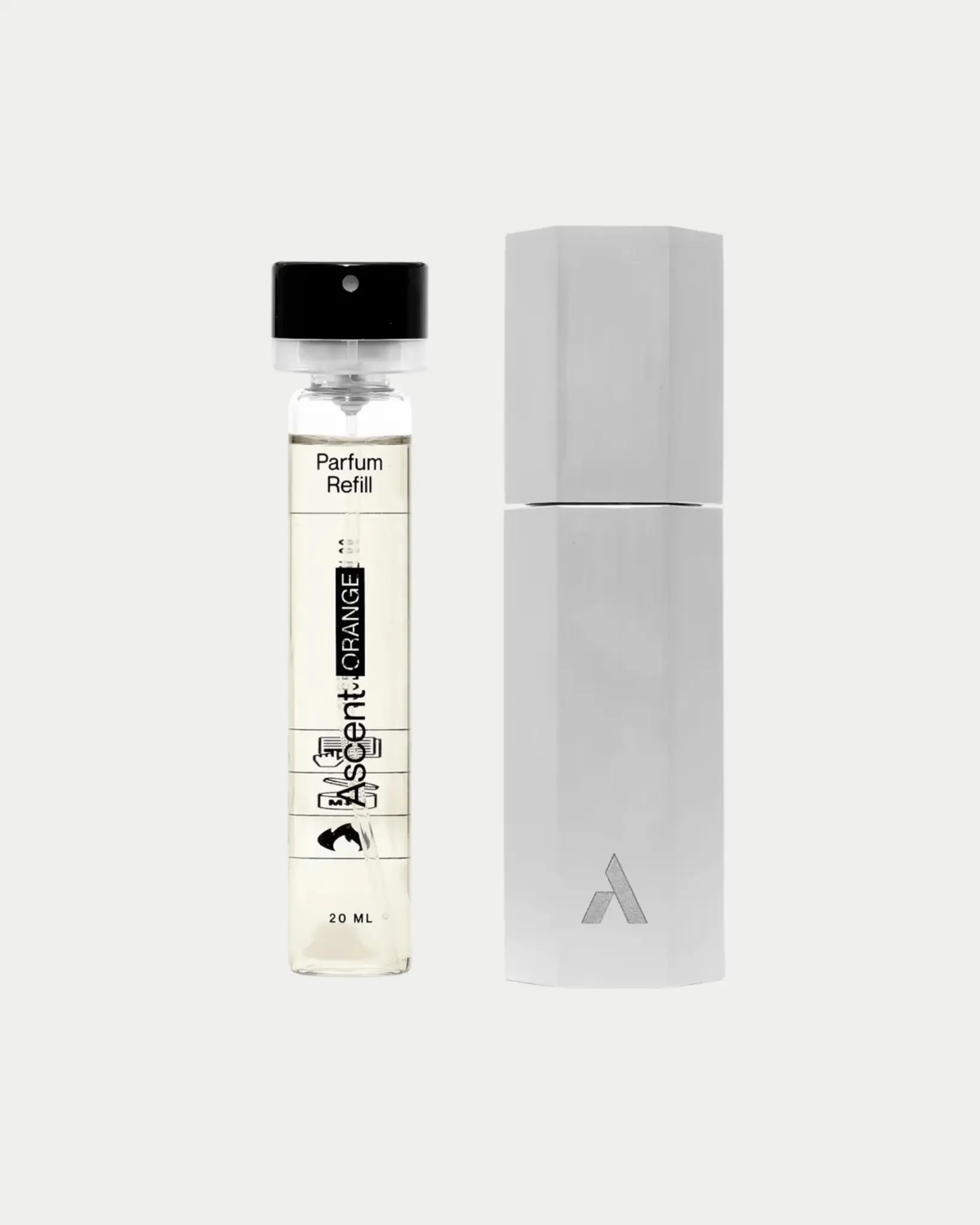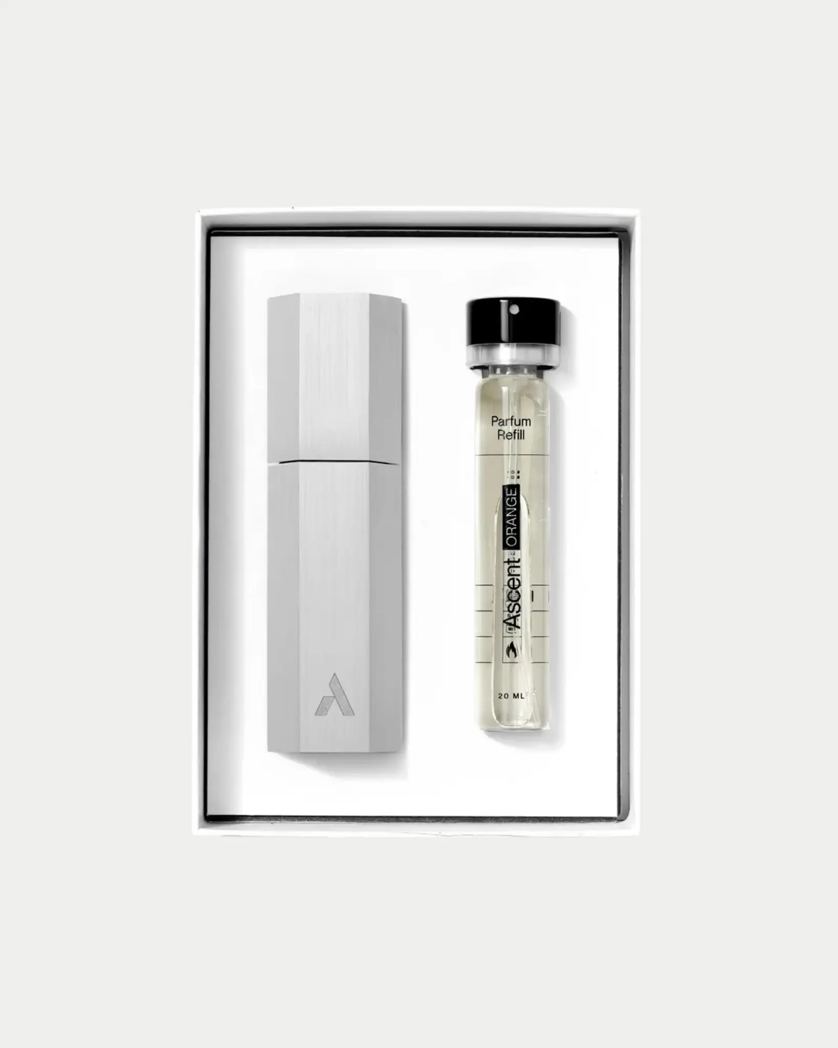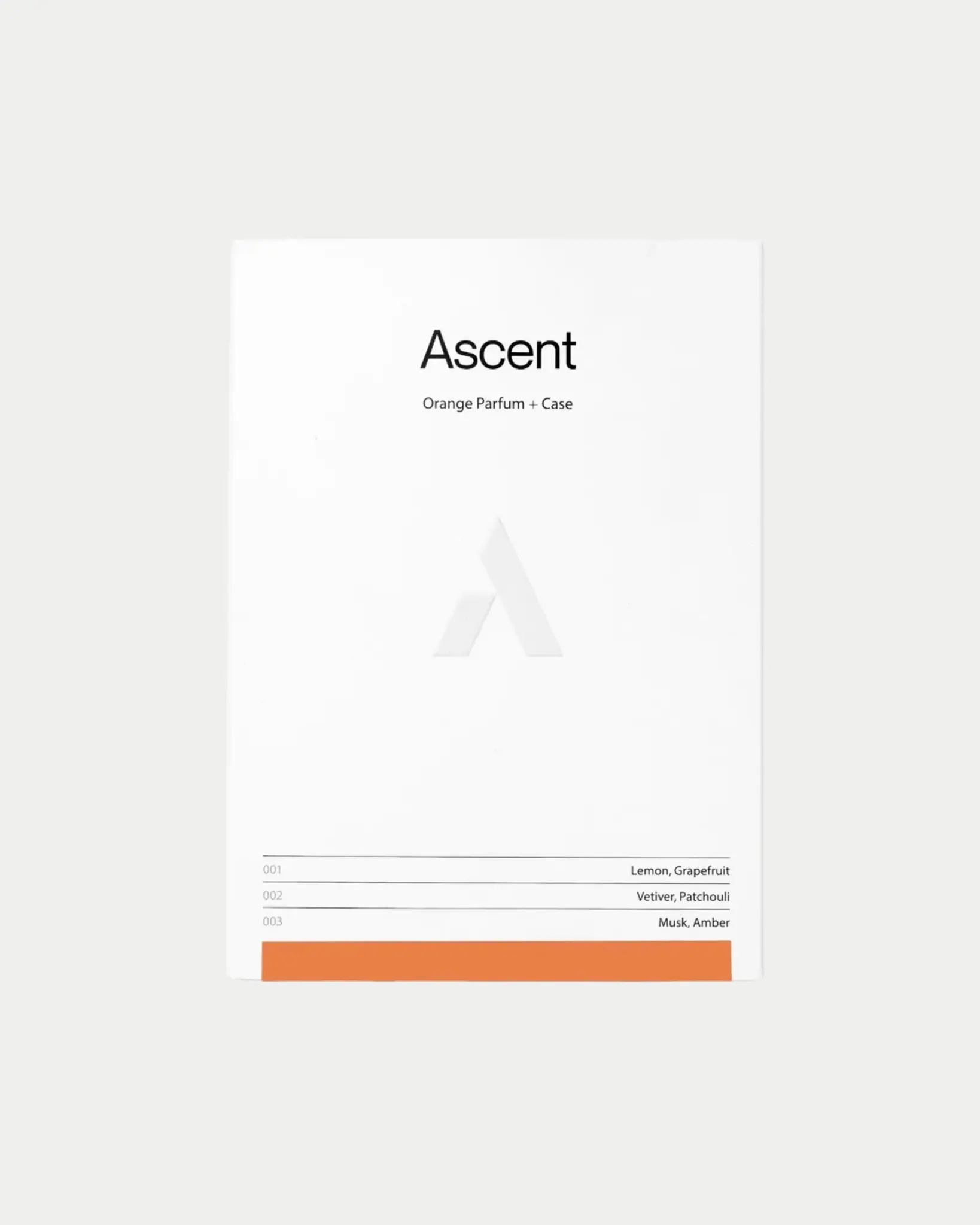De Ascent Orange Starterpack bevat een luxe case en 20ml flacon parfum. Deze uniseks parfum is een energieke combinatie van frisse citrus- en houttonen.