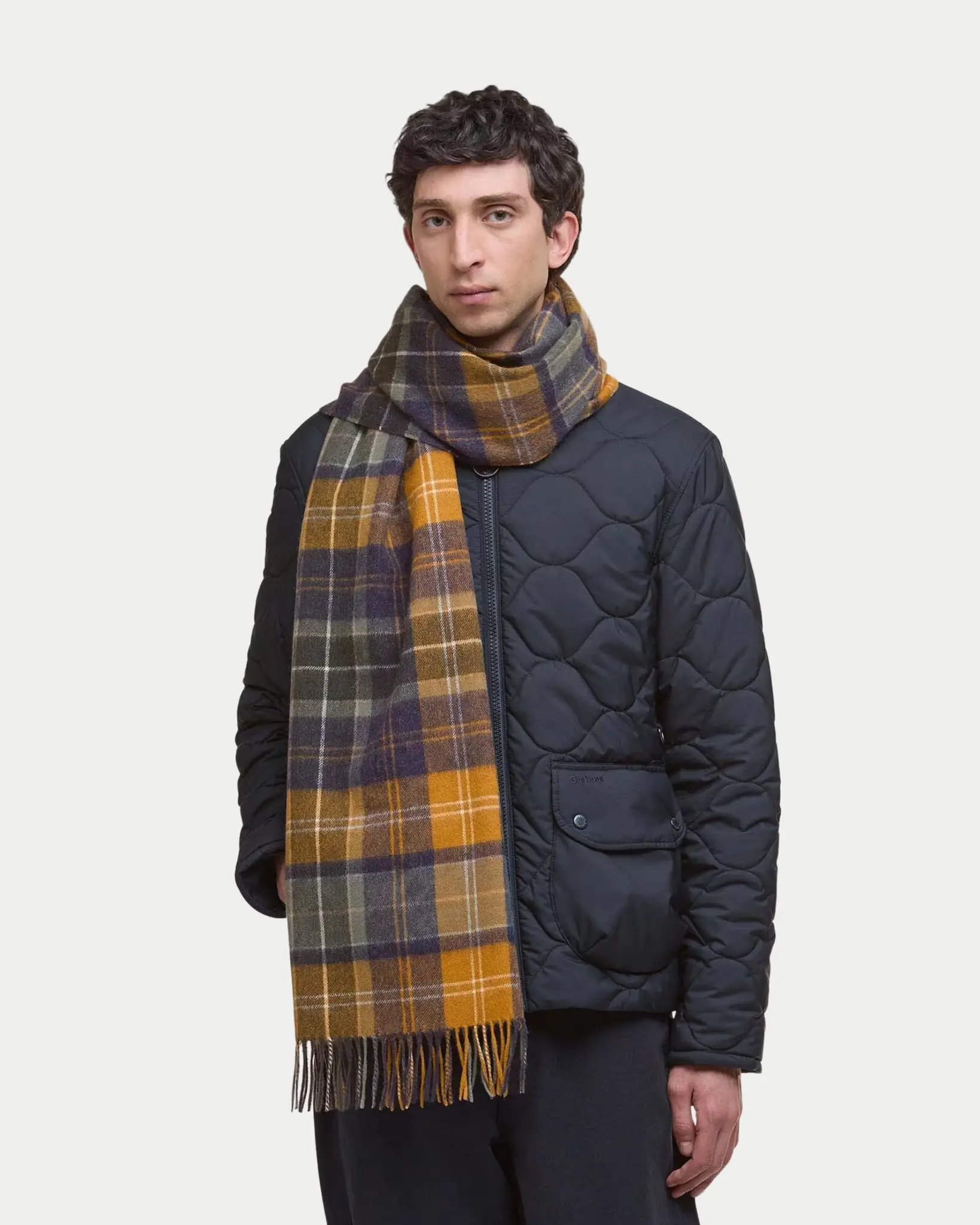 Omwikkel jezelf met een tijdloze stijl en kwaliteit met deze Barbour Brack Patchwork Tartan Sjaal. Deze brede sjaal is gemaakt van 100% lamswol en heeft een opvallend tweekleurig traditioneel tartan-effect.