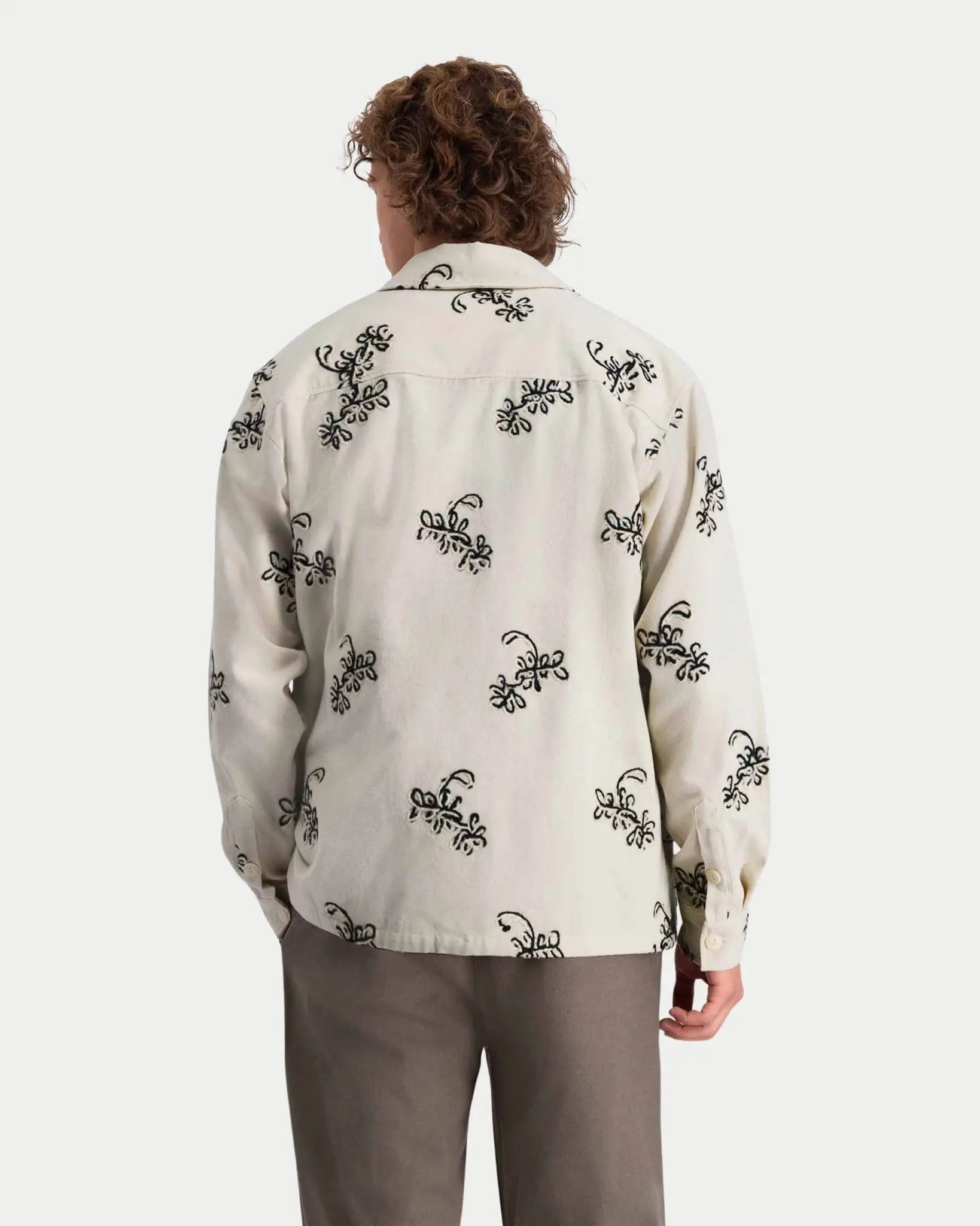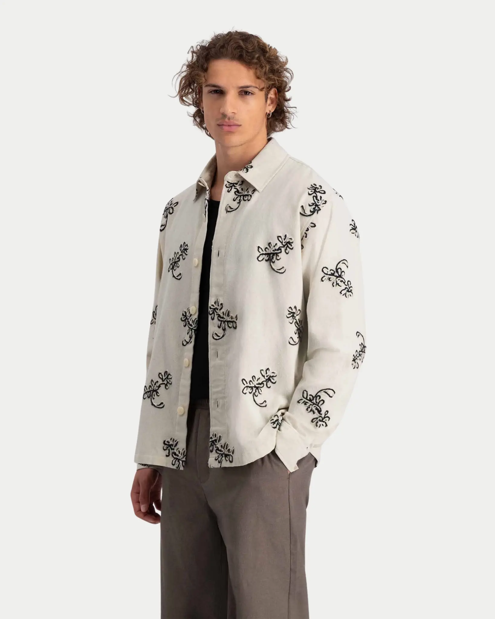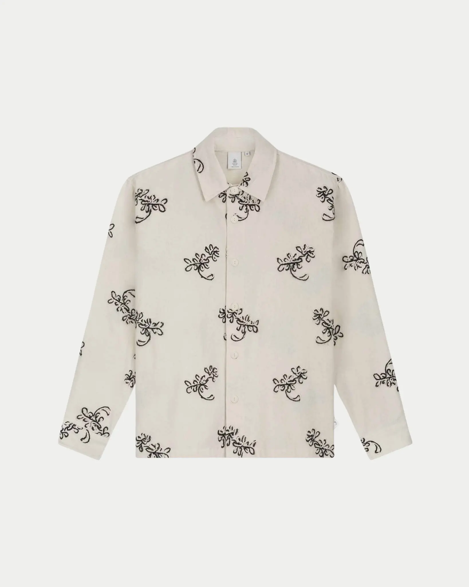 Een overshirt met een subtiele statement. Het geborduurde patroon en parelmoer knopen zorgen ervoor dat je outfit altijd straalt.