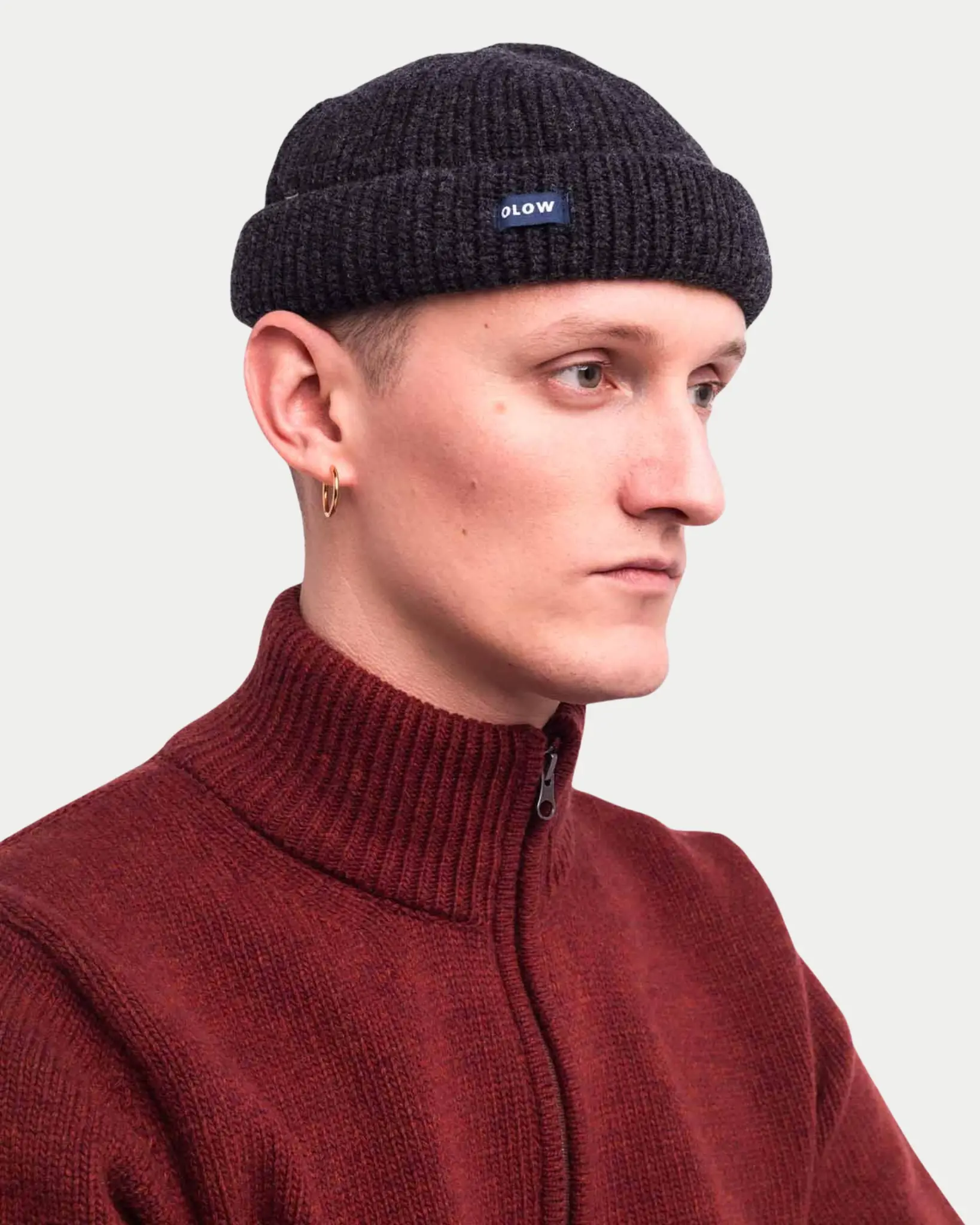 Een korte beanie die geïnspireerd is op het woeste zeeleven. Ontworpen om je hoofd te beschermen tegen de elementen met zijn 100% gerecyclede merinowolconstructie, terwijl je oren bloot blijven.
