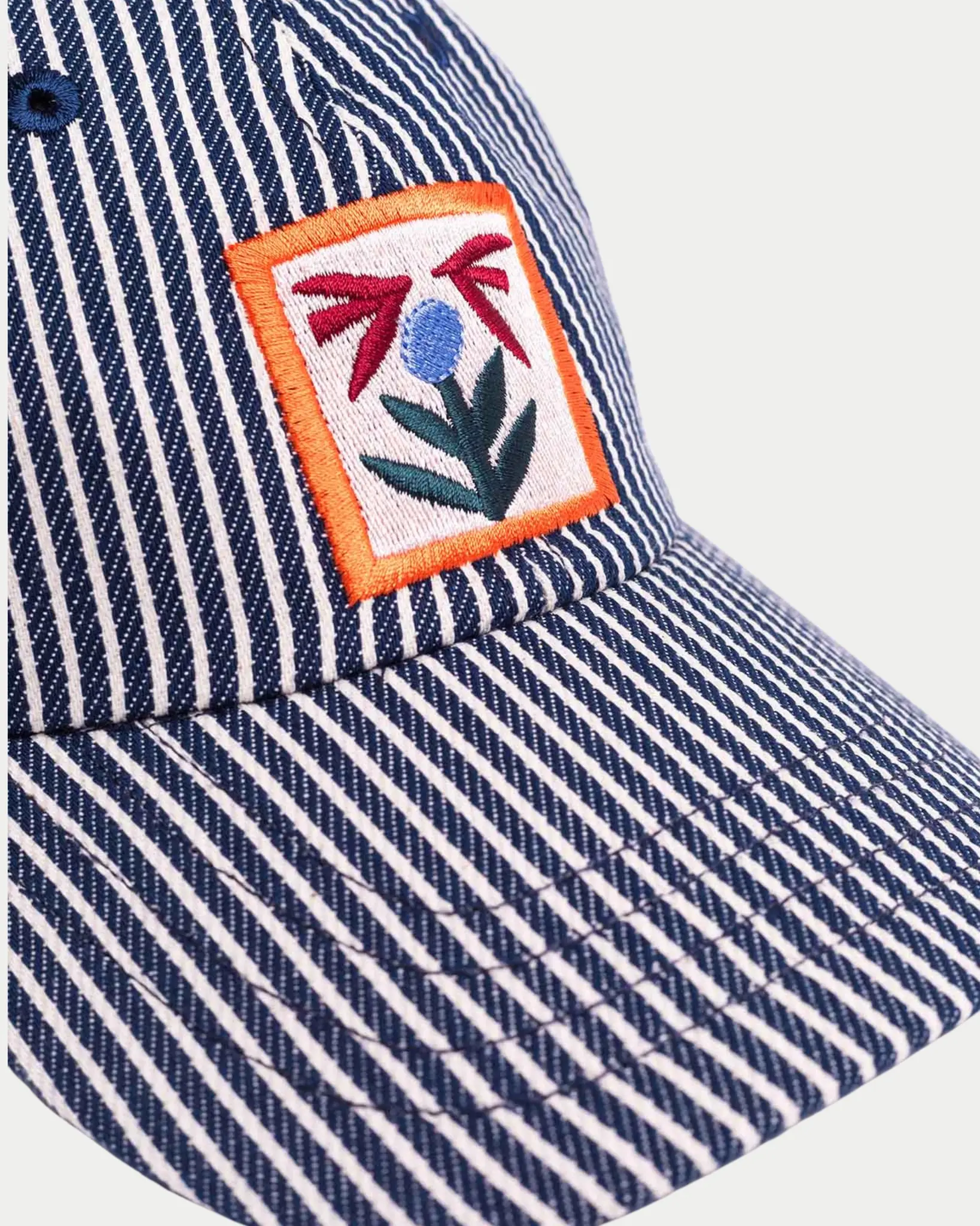 Deze Bud pet is een 6 panel cap met duotone strepen, verstelbare clip en een geborduurd artwork.