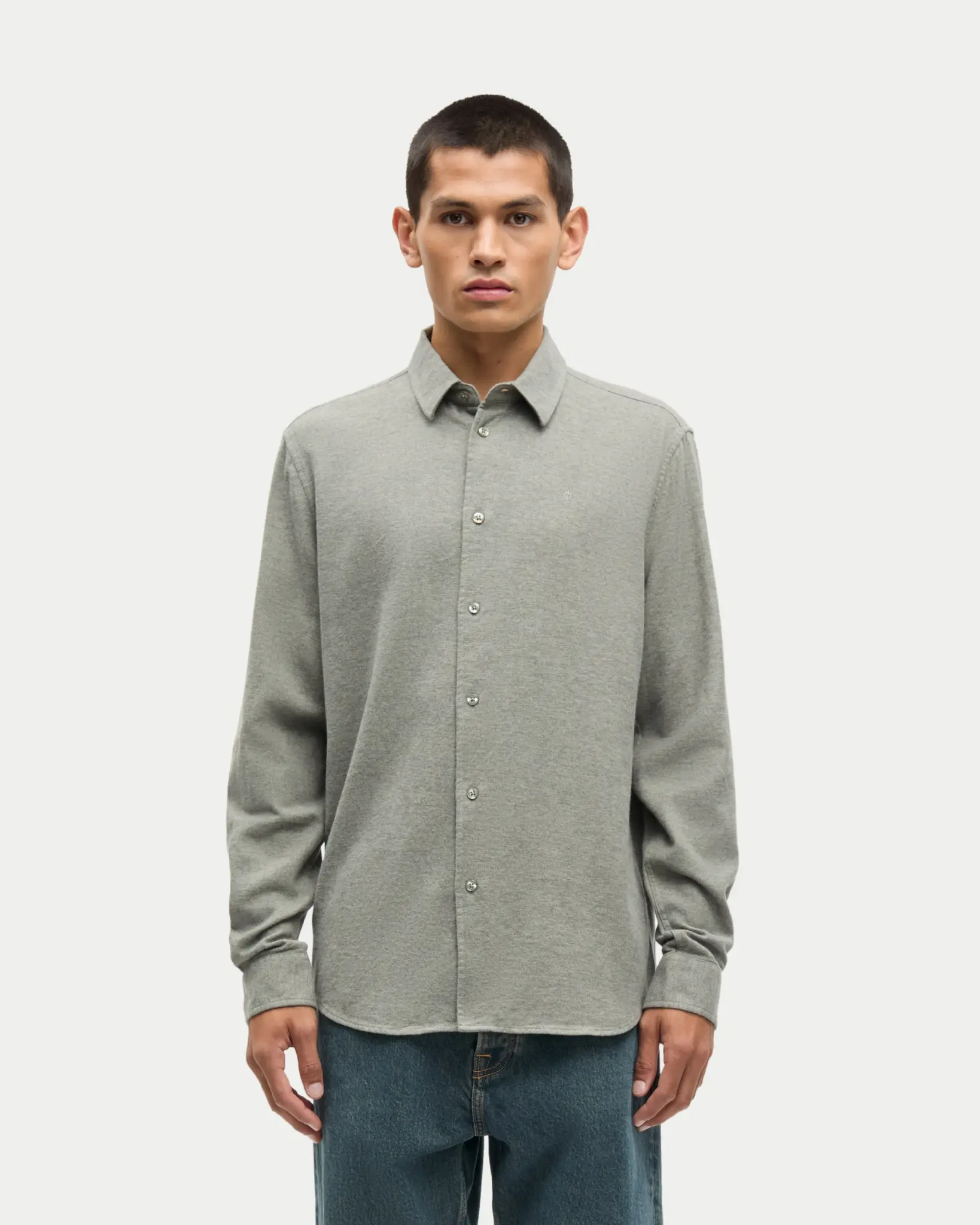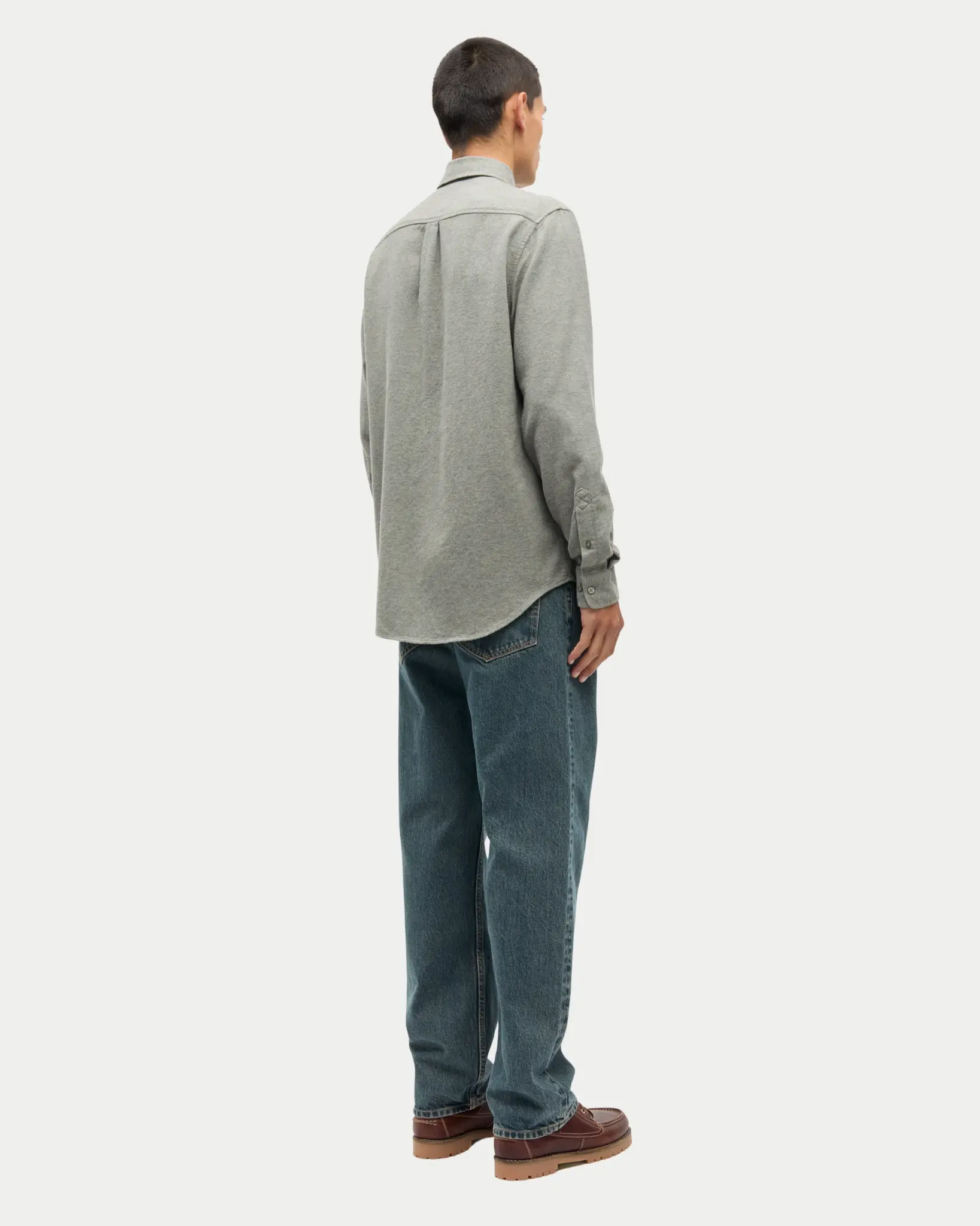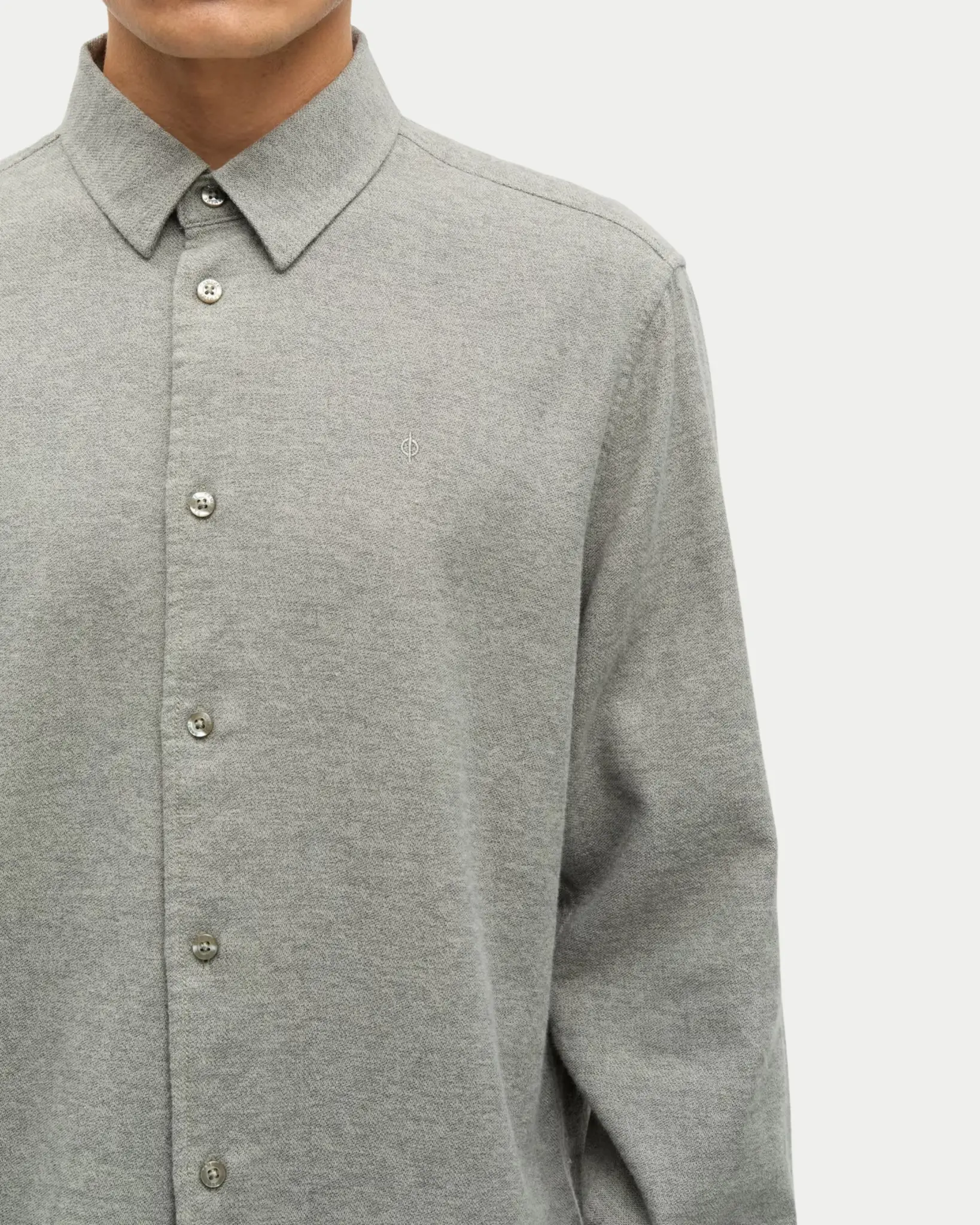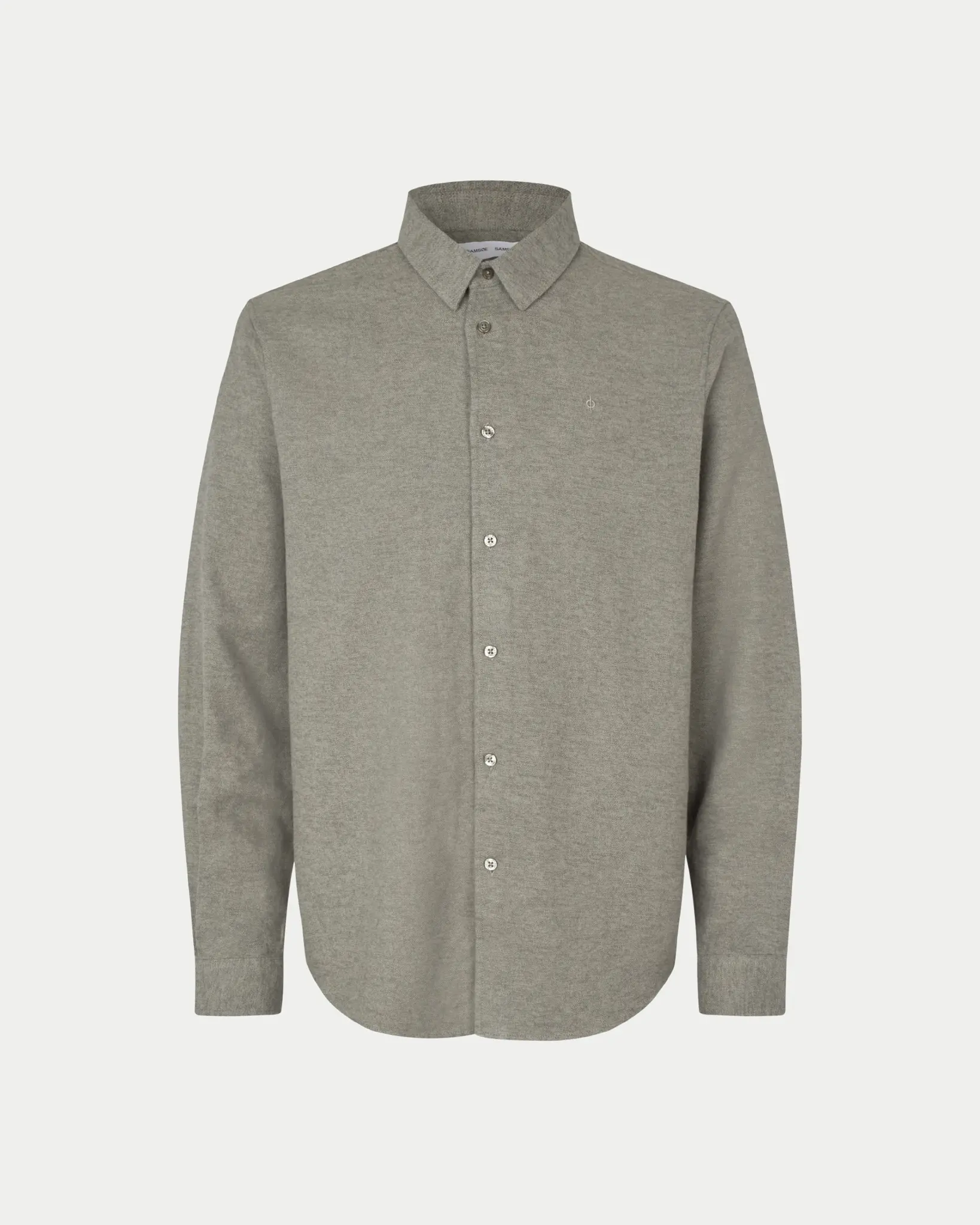Het regular fit overhemd van Samsøe Samsøe: Liam. Deze Elephant Skin heeft een zachtgrijze kleur en is gemaakt van zacht geborsteld biologisch katoen.