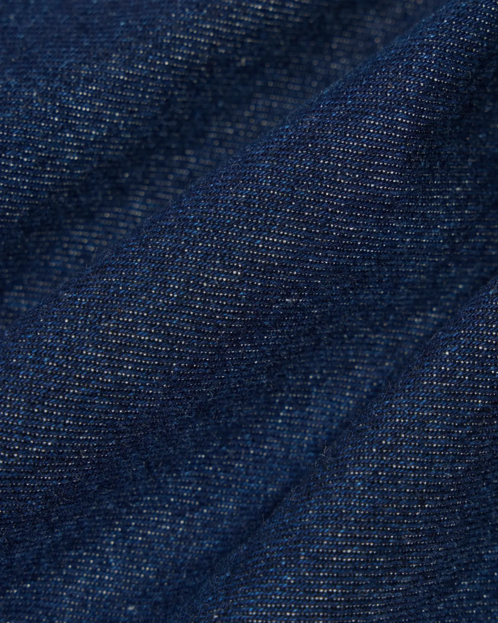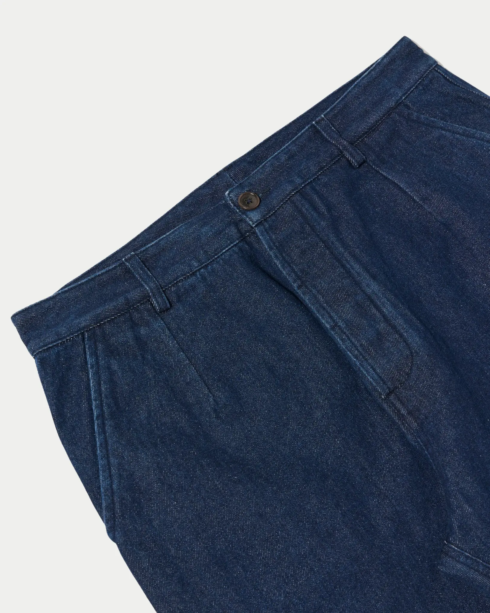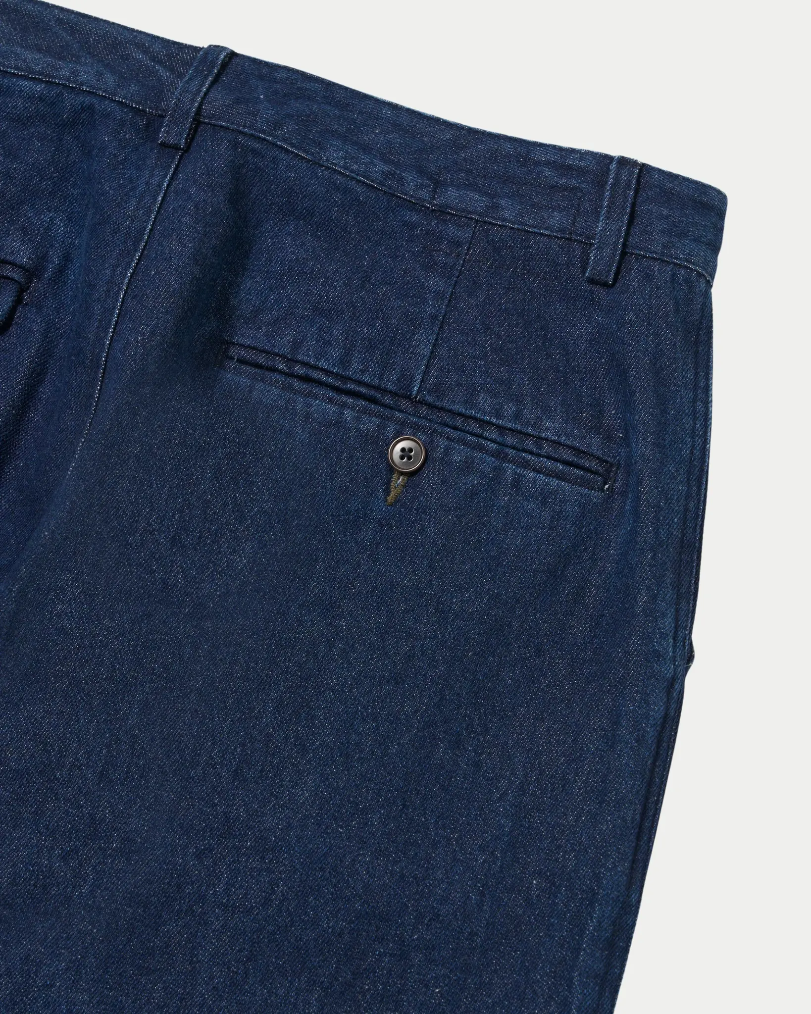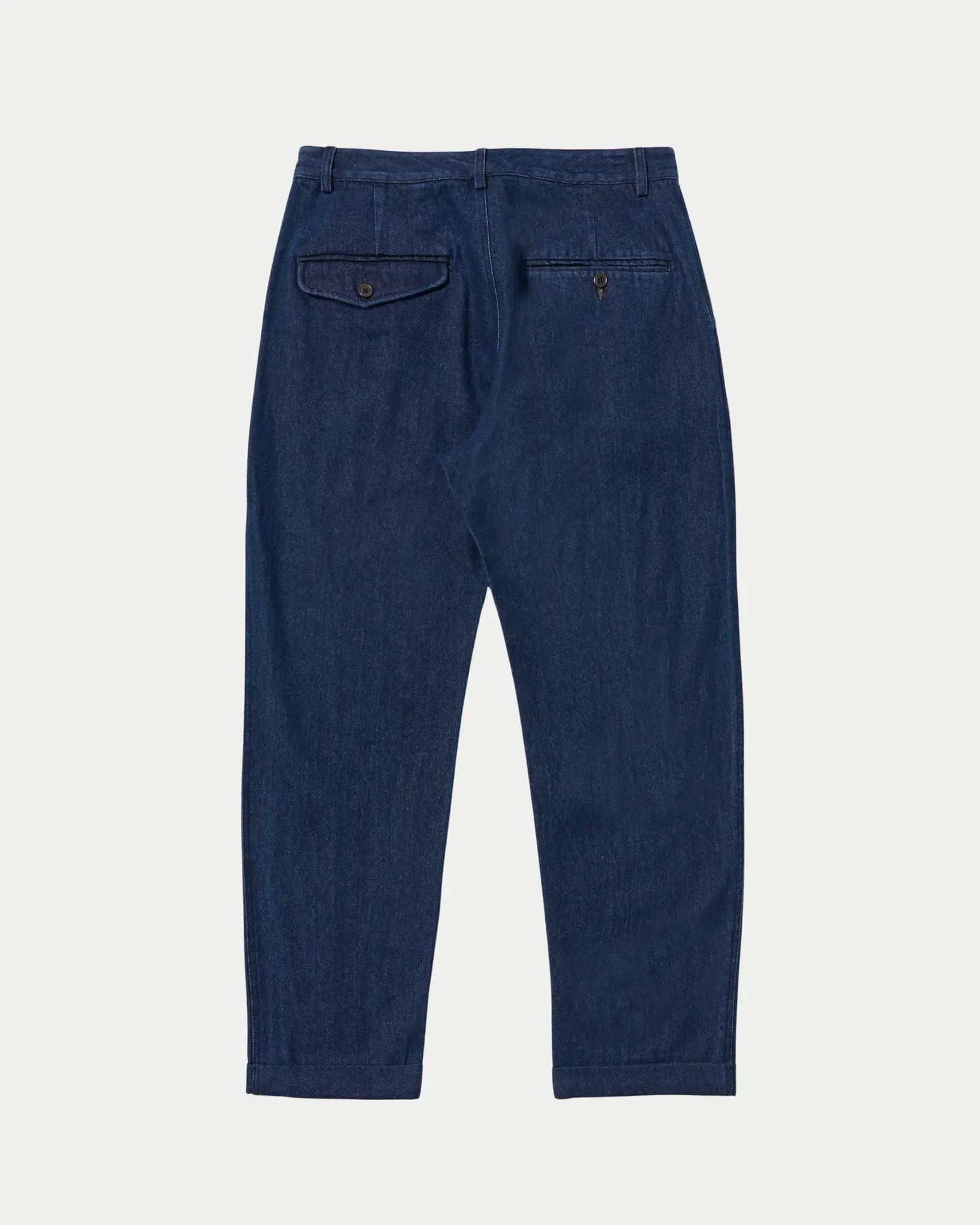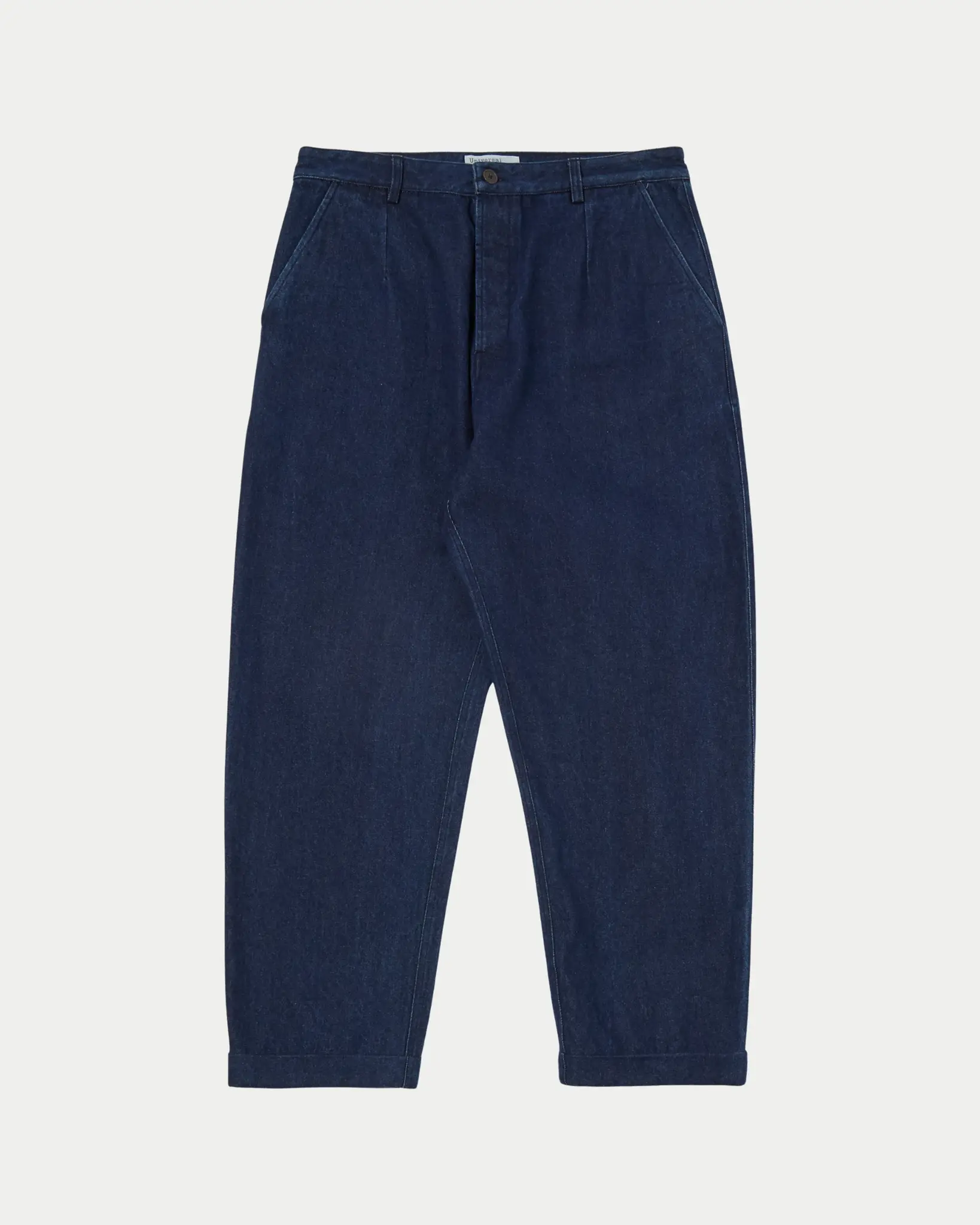 De Super Chino is een taps toelopende loose fit broek. Standaard met omgeslagen zoom en deze Work Denim is gemaakt van een natuurlijke indigo.