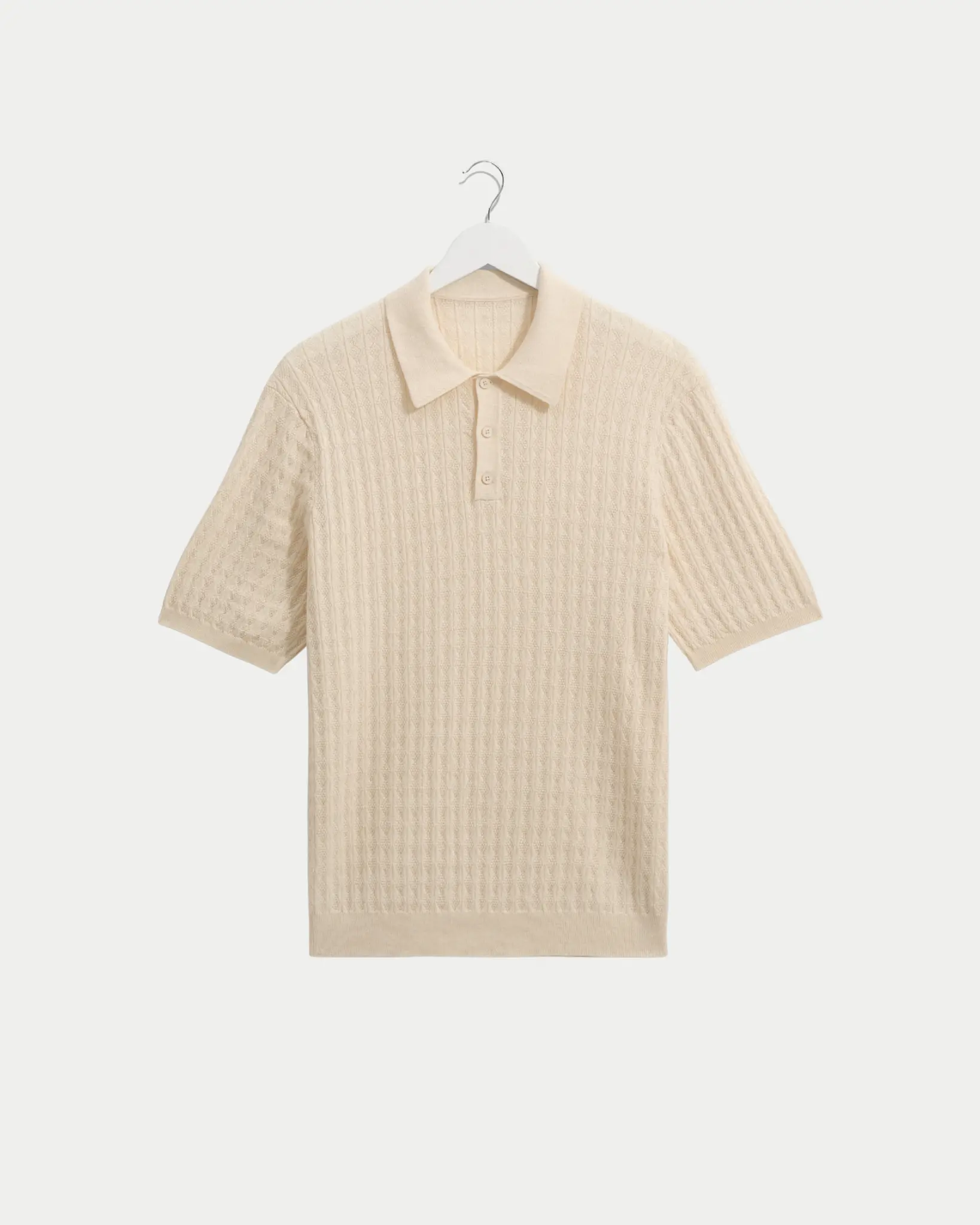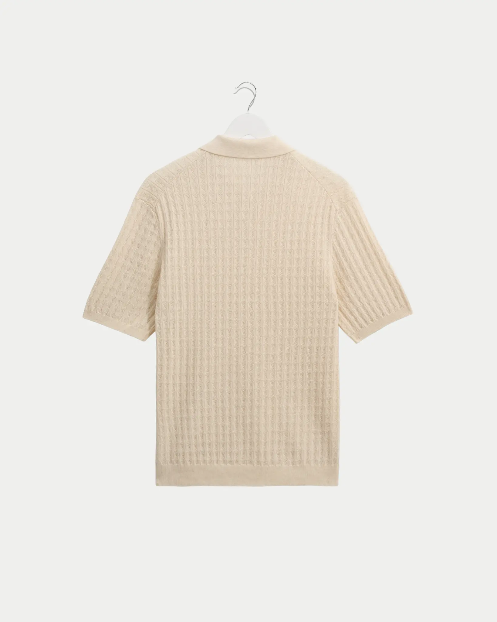 De Naples polo is terug en heeft nu een nieuwe ademende ecru katoenblend en een gestructureerd regular fit. Het resultaat? Een lichter stuk, ideaal voor die zwoele seizoensmomenten.