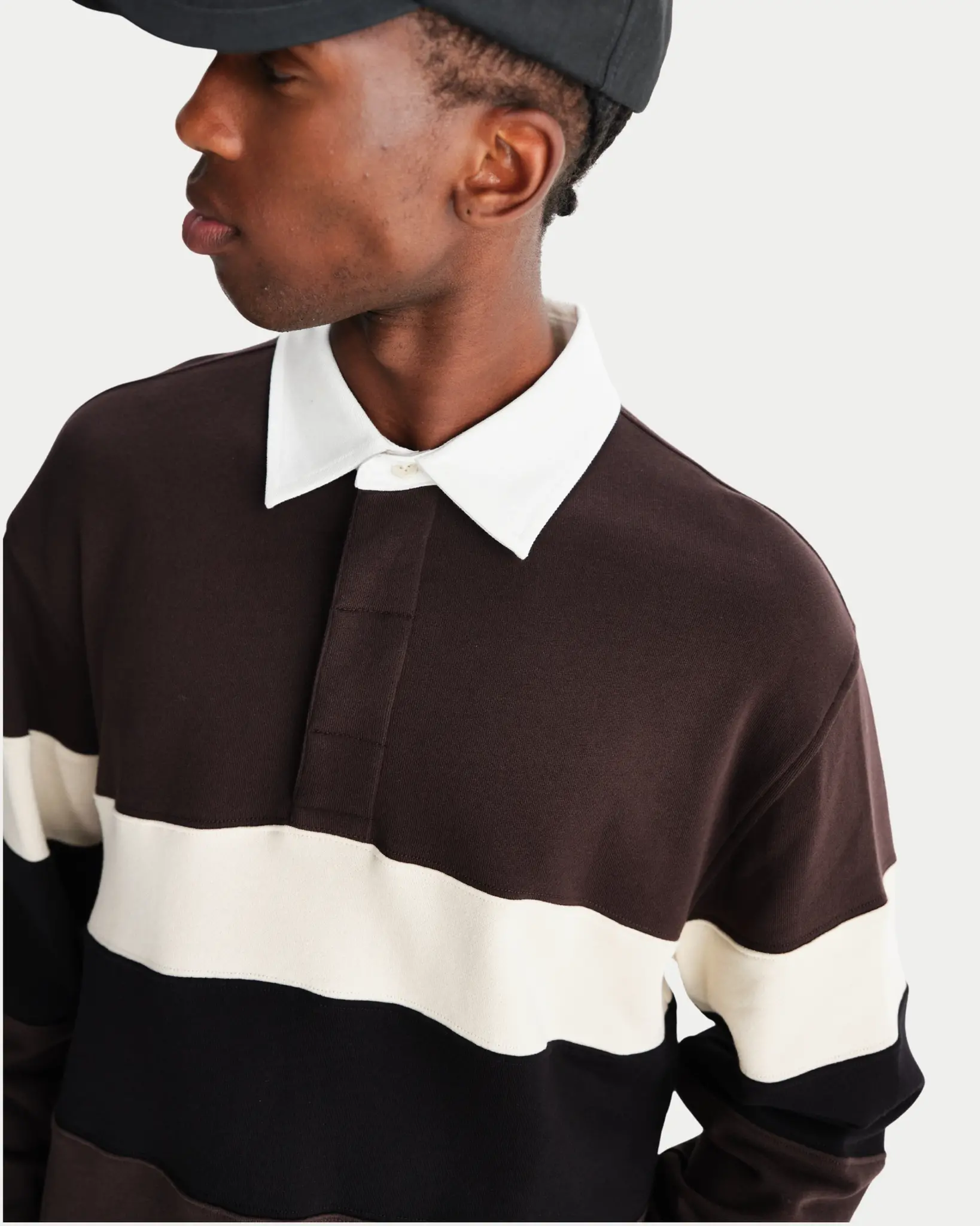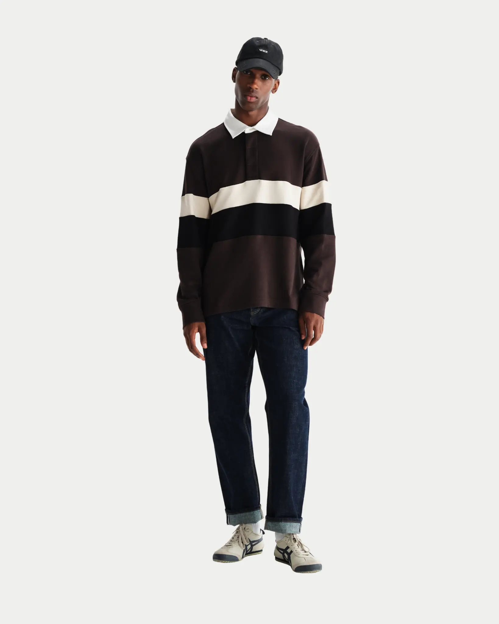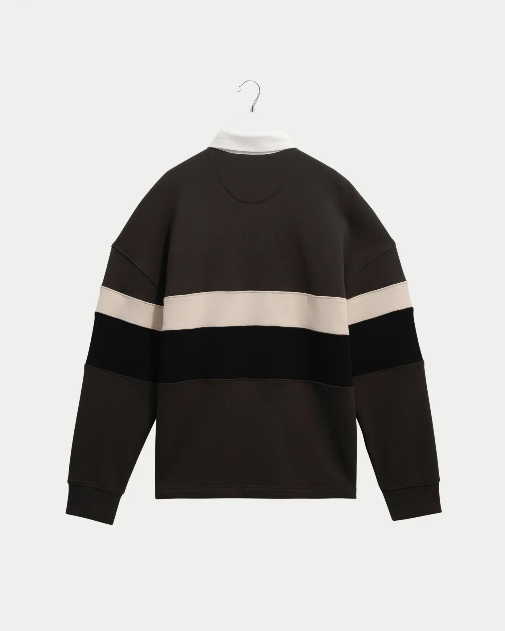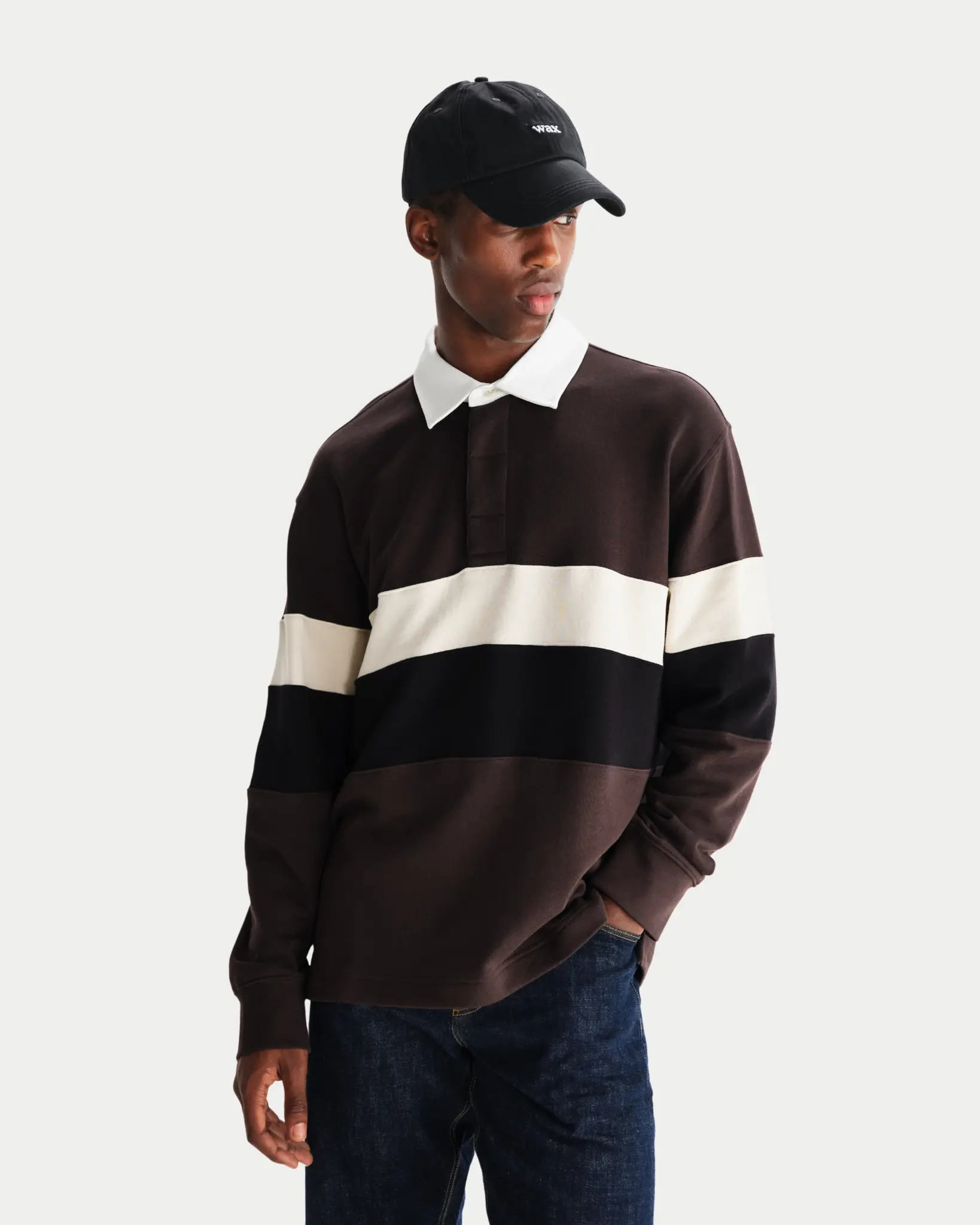 De Rowhill is eem modern rugbyshirt. Het shirt heeft een relaxte pasvorm, is gemaakt van zwaar 100% katoen en combineert elementen van een traditioneel rugbyshirt met een polo met kraag.
