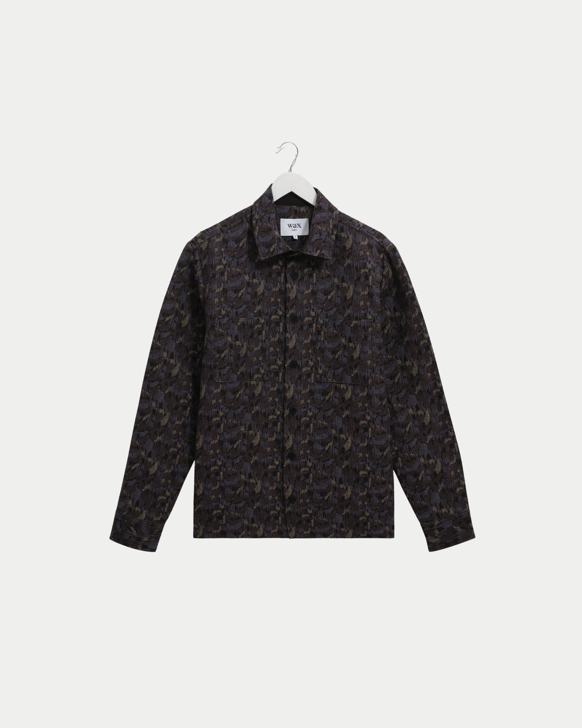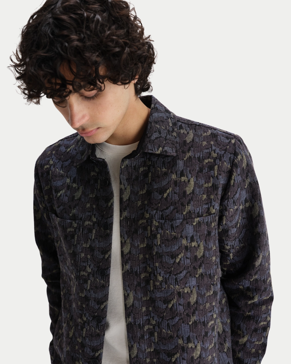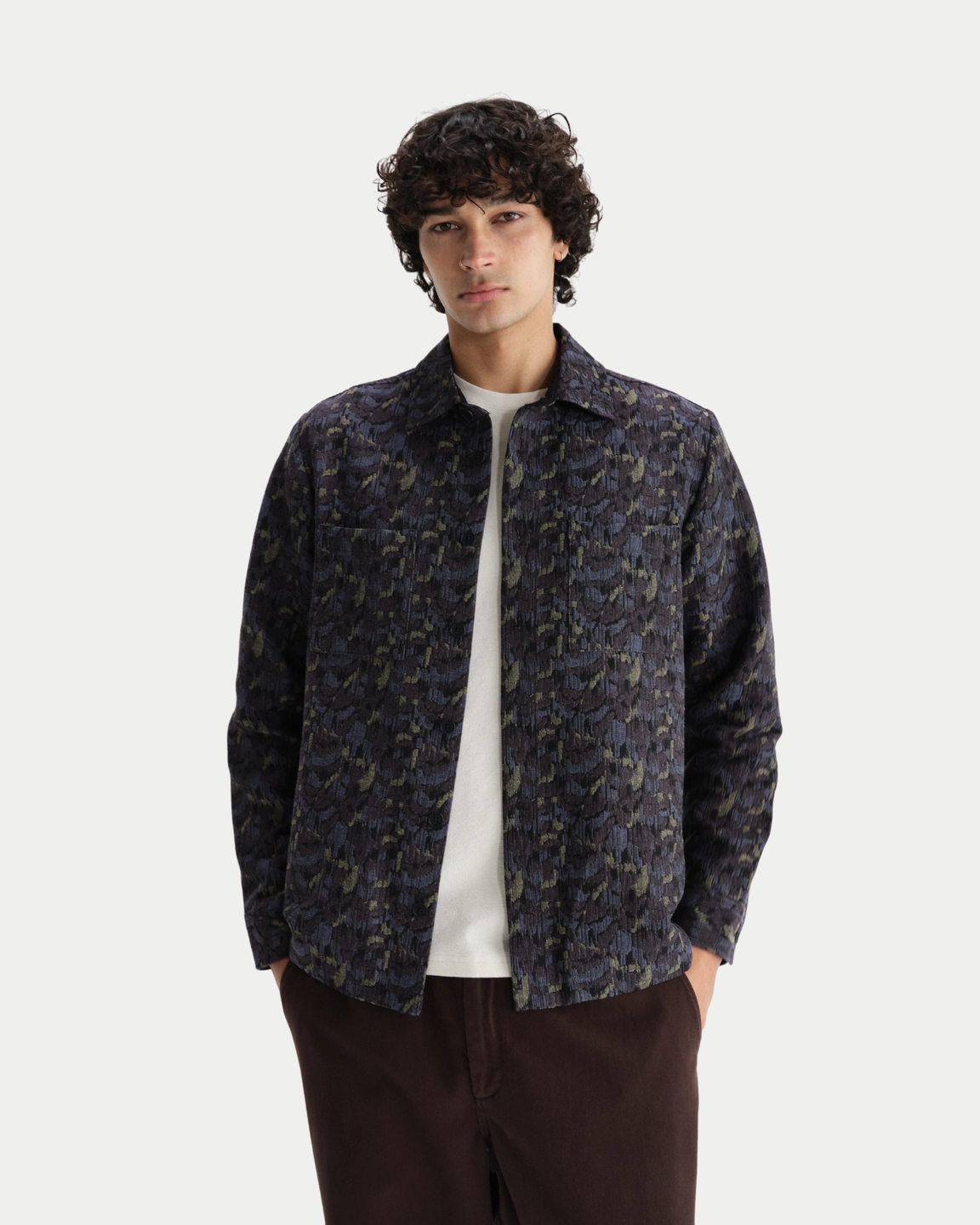 Het kenmerkende kledingstuk van Wax. De Whiting, keert terug in een nieuw jacquard camouflageontwerp dat marineblauwe, blauwe en groene garens combineert.
